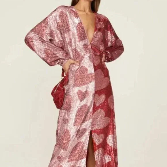 Farm Rio Dresses Farm Rio Heart Sequin Midi Dress Pink And Red Poshmark